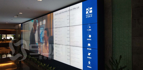 該液晶大屏幕主要位于電梯出口處,主要是用來做培訓(xùn)中心宣傳使用,素希根據(jù)客戶要求定制了一組3×7拼接液晶屏,顯示畫面清晰細(xì)膩,色彩真實一致,贏得了客戶滿意的評價。