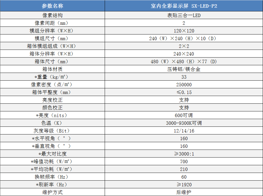 P2室內(nèi)小間距高清全彩LED顯示屏技術(shù)參數(shù):