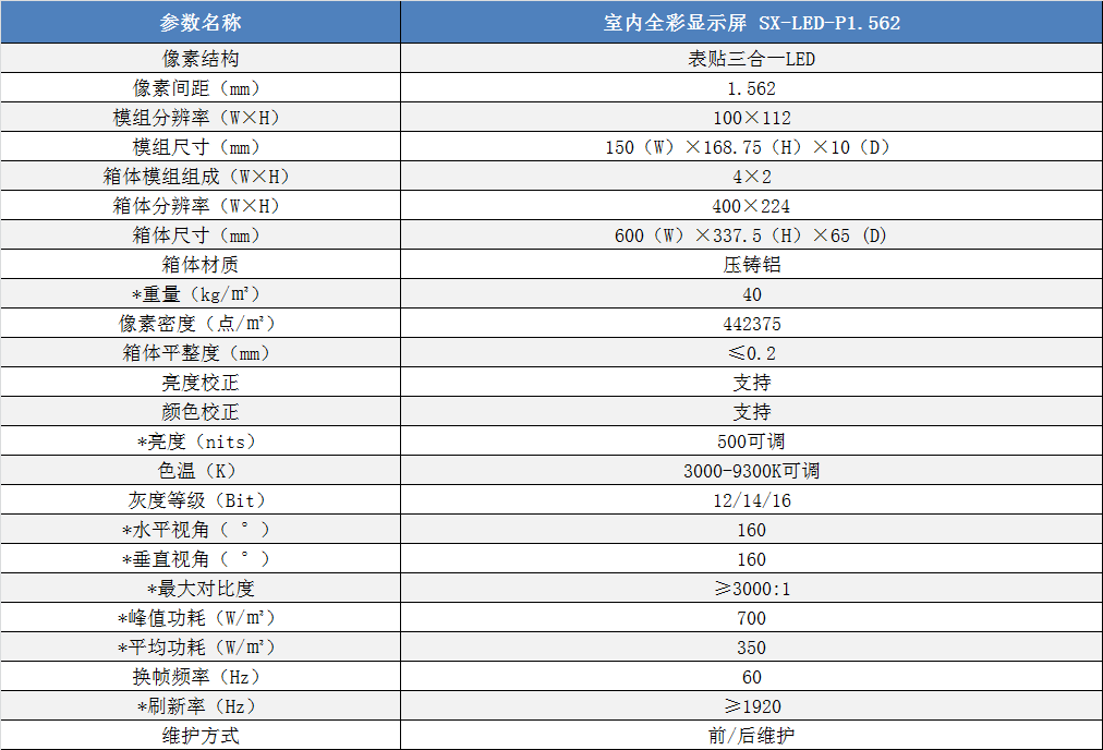 P1.562室內小間距高清全彩LED顯示屏技術參數: