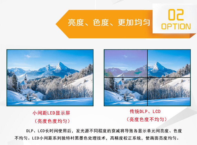 2、獨自開模,16:9的黃金比例,完美替代LCD、DLP拼接尺寸。